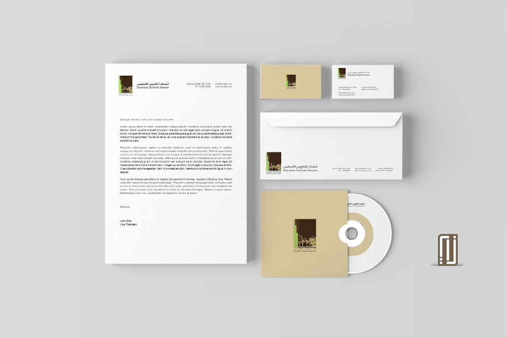 شعار المتحف الالكتروني الفلسطيني ، الشعار من تصميم زكريا ابراهيم لصالح فريق احياء الشبابي